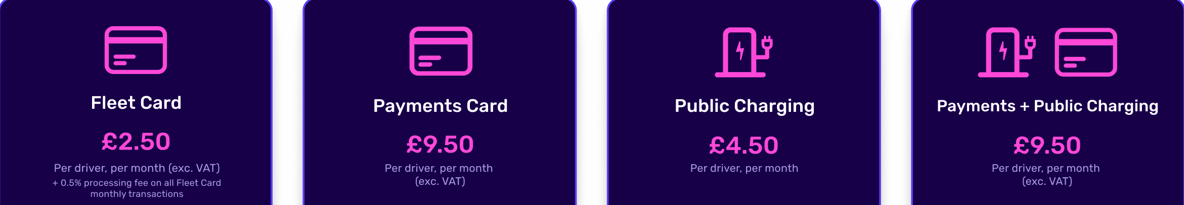 For charging and fleet payments cards, here's a snippet to the options we offer: